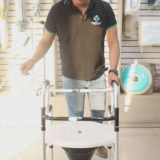 La Silla 3 en 1 de ProducMedic es una solución práctica y versátil para el cuidado diario. Funciona como andador, silla sanitaria y silla de ducha, adaptándose a diferentes necesidades con total comodidad. Su estructura de aluminio, impermeable y plegable, la convierte en una opción ideal para el hogar o traslado.